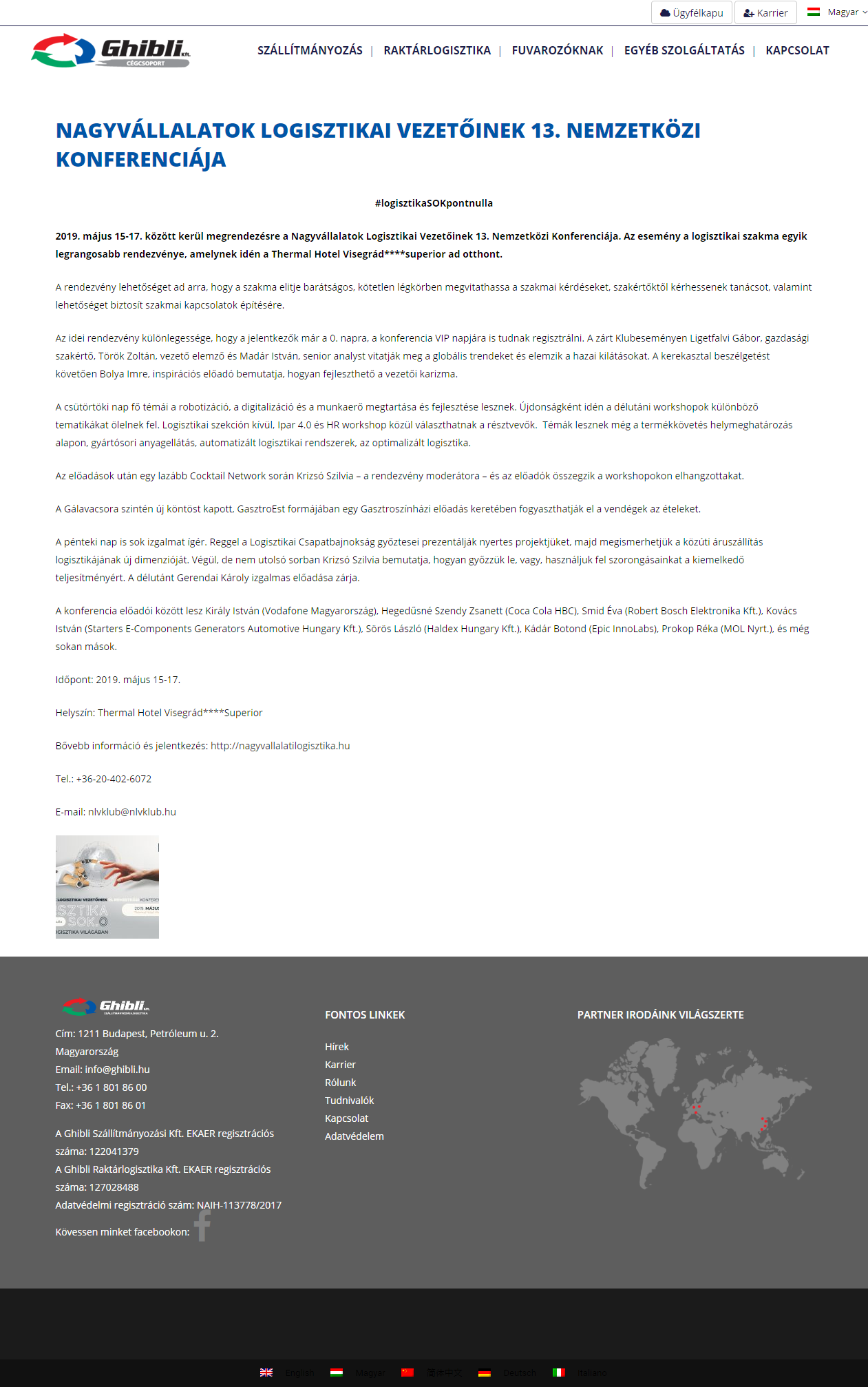 Nagyvállalatok Logisztikai Vezetőinek 13. Nemzetközi Konferenciája